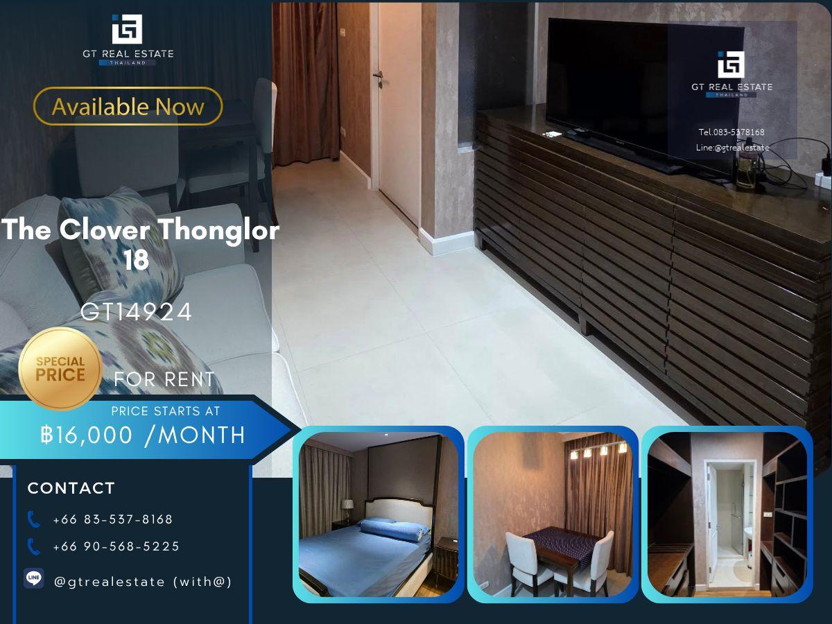 คอนโด The Clover Thonglor 18 เดินทางสะดวก เฟอร์นิเจอร์ครบ พร้อมเข้าอยู่ทันที