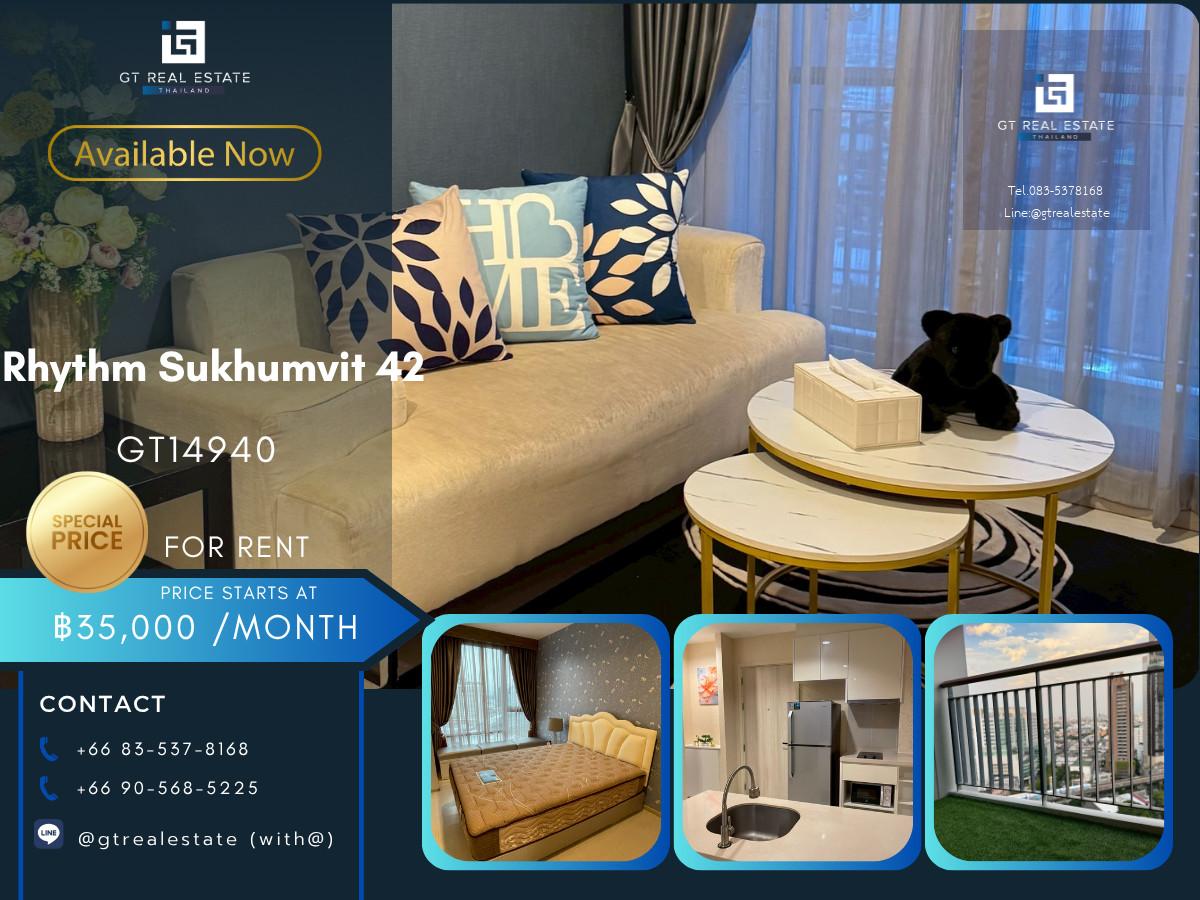 Condo Rhythm Sukhumvit 42, convenient travel, near BTS, there is a shuttle, beautiful room, fully furnished, ready to move in.