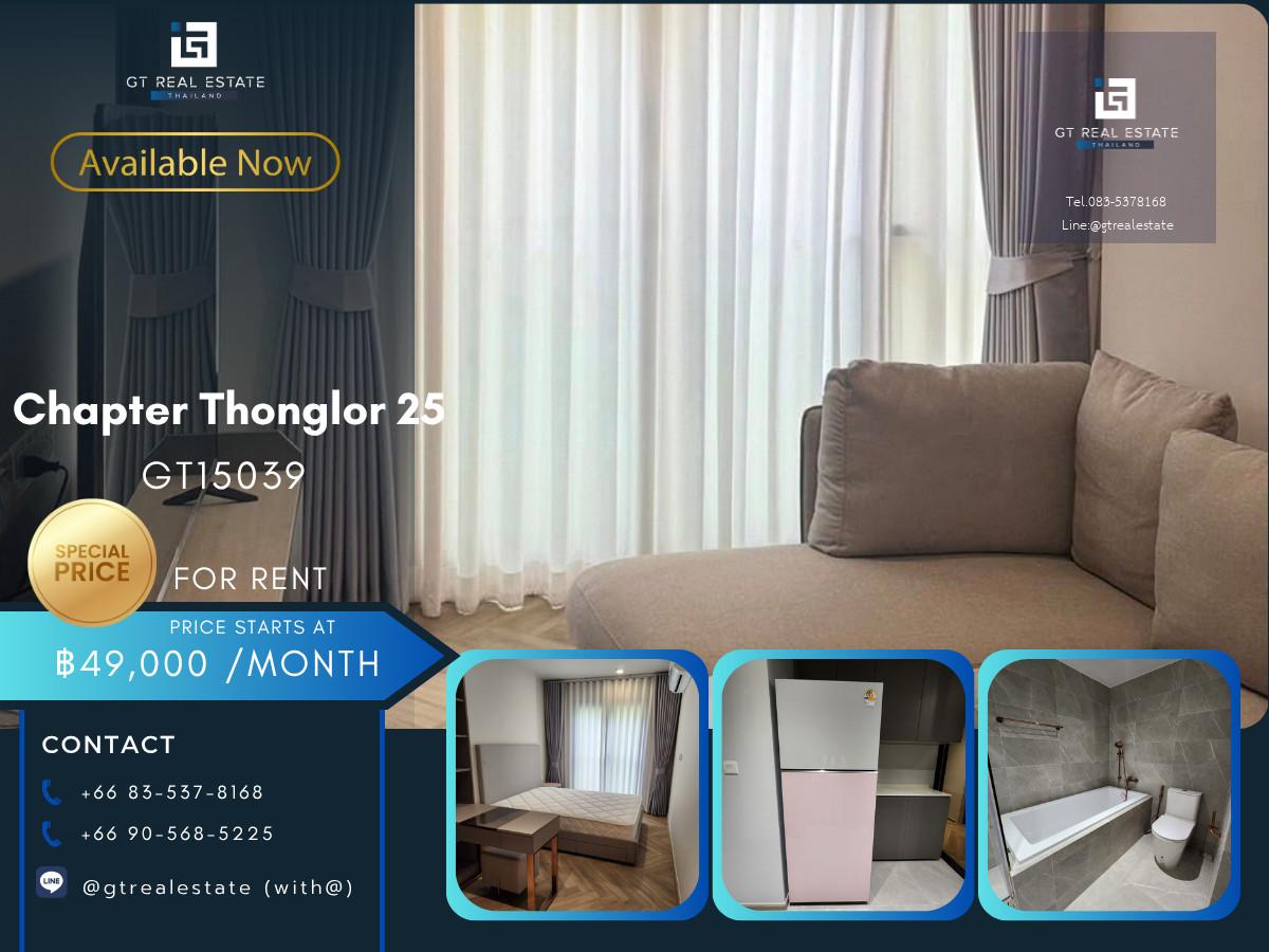 คอนโด Chapter Thonglor 25 เดินทางสะดวก มีรถรับส่ง เฟอร์นิเจอร์ครบ พร้อมอยู่
